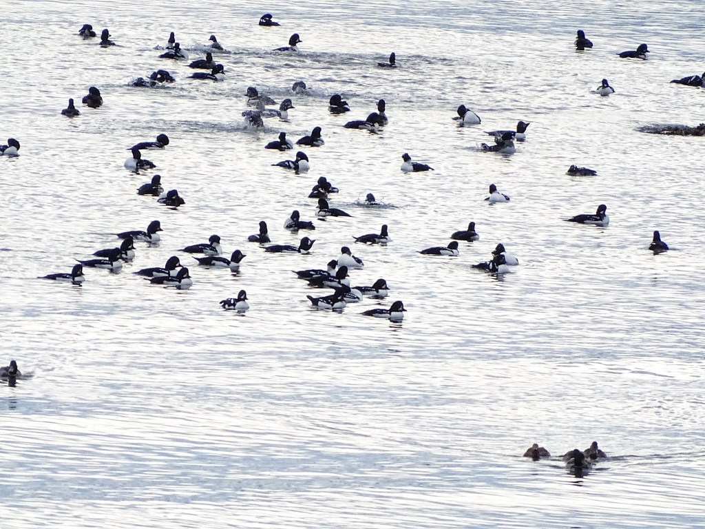 Bon nombre de garrots passent l’hiver sous nos lattitudes. Si le Garrot à œil d’or est très présent dans la région métropolitaine, il arrive assez fréquemment qu’un ou qu’une Garrot d’Islande se glisse dans un groupe de Garrot à oeil d’or. Sauriez-vous les reconnaître?