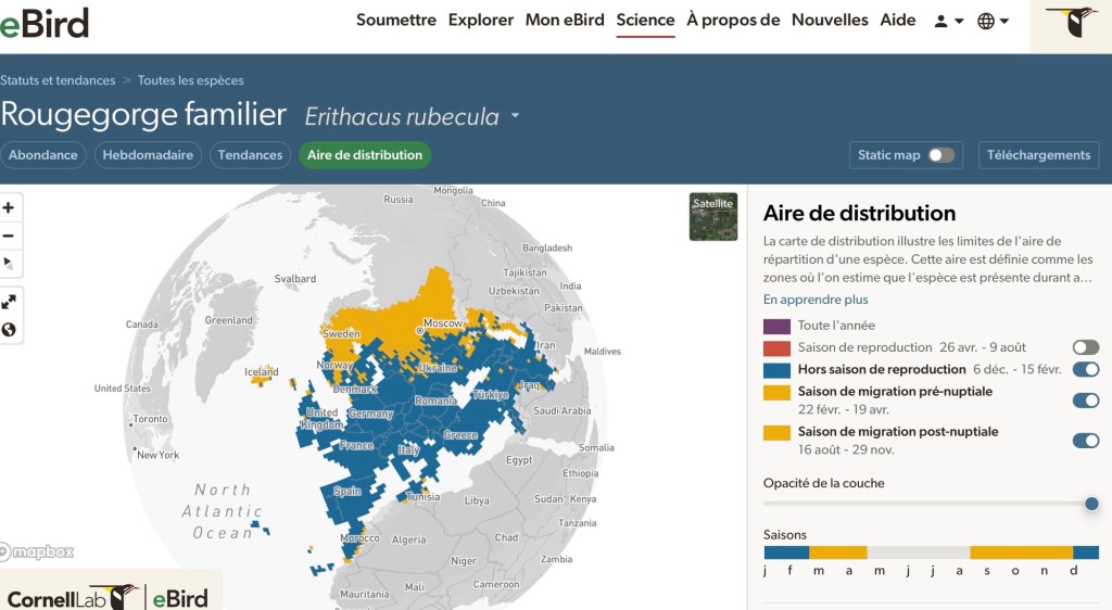 Avec tous ces paparazzis, le Rougegorge familier de Montréal est l’individu de cette espèce le plus photographié au monde. Seulement sur eBird, son portrait apparaît sur près de 1000 photos téléversées entre le 7 et le 21 janvier 2026 sur plus de 350 feuillets d’observation.