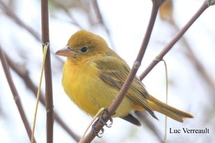 Toujours présent au moment d’écrire ces lignes, la femelle piranga de Laval, nommée amicalement Lady Gaga par Luc V., fréquente assidument depuis novembre sa mangeoire à succion, qui est accolée à une fenêtre de son domicile dans un secteur résidentiel de Ste-Dorothée, Laval.