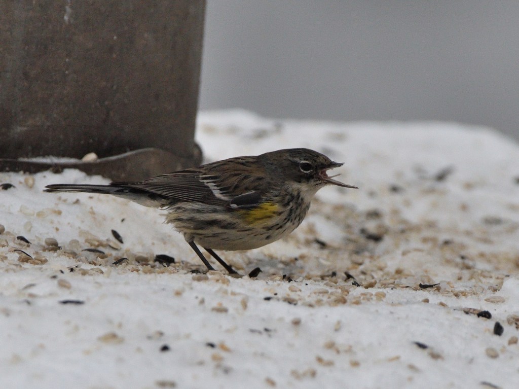 2 avril 2017 à Québec (Capitale-nationale) Alexandre Terrigeol a observé durant tout l’hiver au Bois-deCoulonges une paruline à croupion jaune avec la mandibule supérieure passablement cassé et la mandibule inférieure allongée.