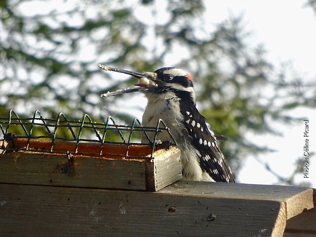 Depuis avril 2021, à St-Mathieu-du-Parc (Mauricie), Lyne Dubé me rapporte: « J’observe depuis le printemps un PIC chevelu que l’on a surnommé PIC-Nocchio à cause de son bec. » Le court extrait vidéo permet de voir la difficulté qu’il a à s’alimenter.