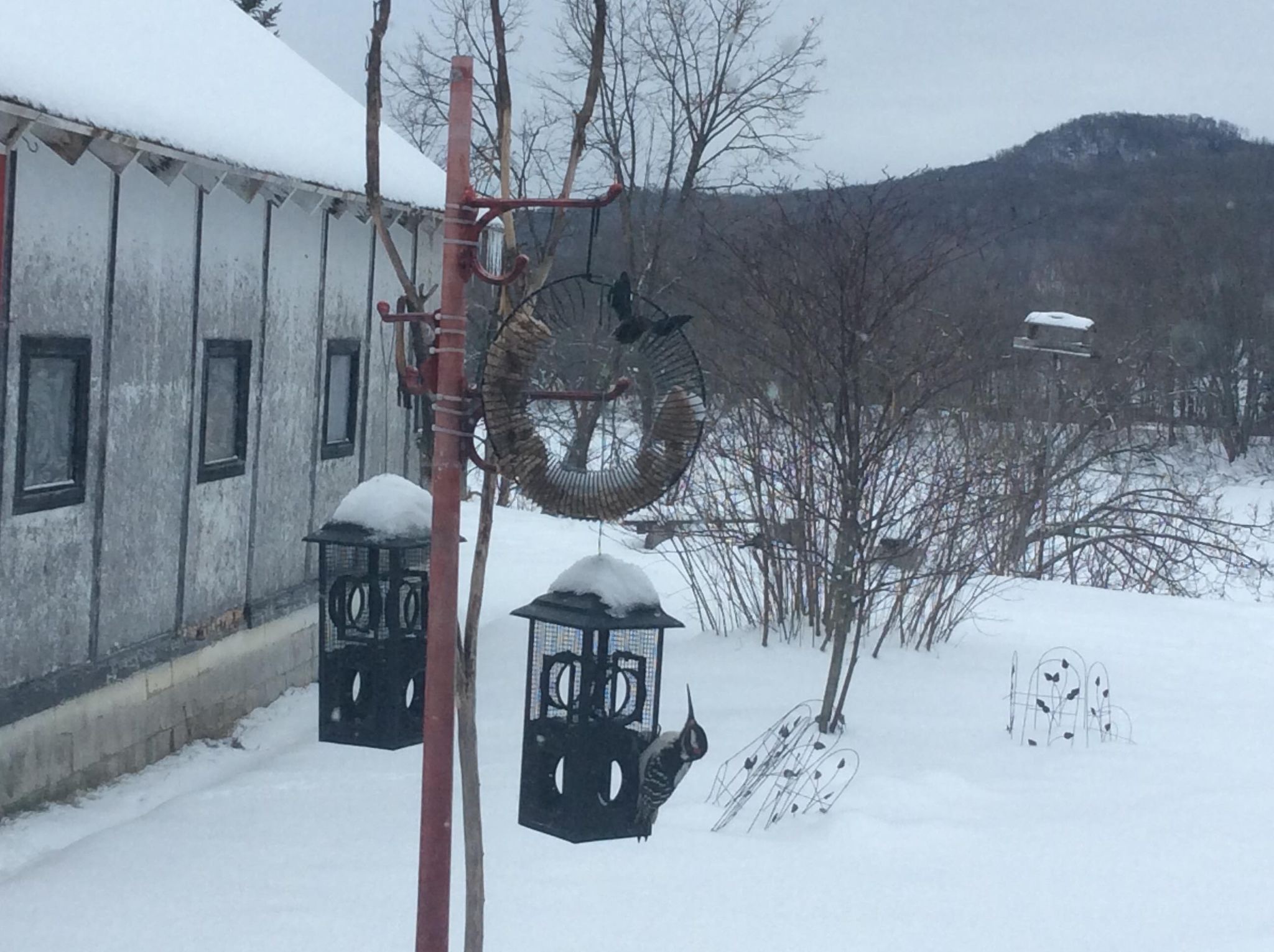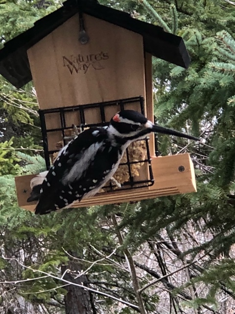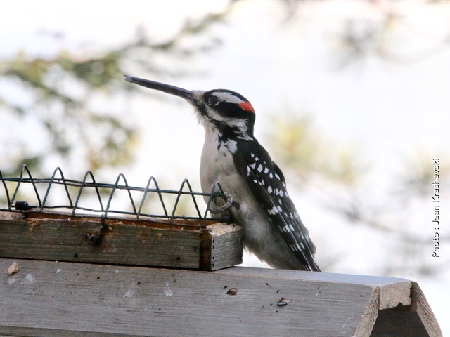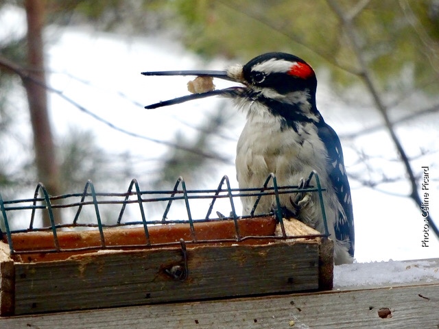 Janvier 2021 à Brébeuf (Laurentides) « Un pic chevelu mâle avec un bec anormalement long a été observé aux mangeoires de Martin Nobert le 1er janvier et revu régulièrement jusqu’au 6 février. Selon les photos transmises le même oiseau a été vu le 6 février à 8 h 20 chez Suzanne Maillé et à 10h30 chez Martin Nobert. Entre les deux résidences, il y a une distance de 1,8 km et la rivière Rouge », nous a rapporté Michel Renaud.