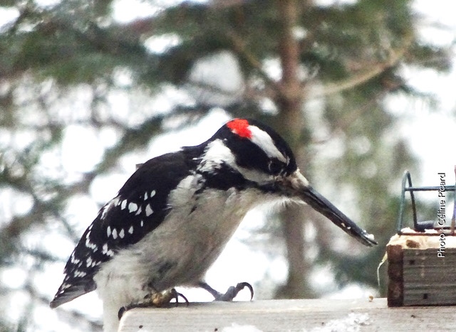 Février 2021 à Chertsey (Lanaudière). Céline Picard et Jean Krashevski reçoivent la visite quotidienne à leur mangeoire d’un pic chevelu mâle au bec démesurément long, digne de la tirade de Cyrano. En fait, le bec est si long que la langue de l’oiseause se rend à peine au bout. Cyrano peine à s’alimenter. D’autres pics chevelus mâles semblent plus agressifs envers lui qu’envers leurs congénères.
