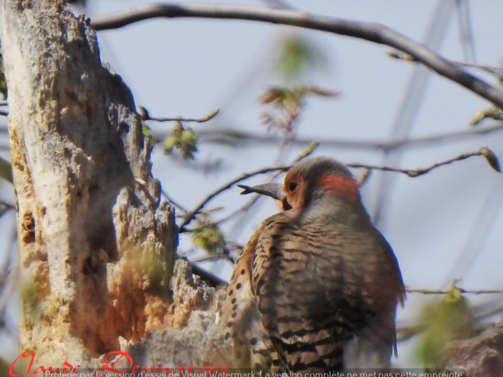 Le 1er mai 2021, dans la Réserve naturelle Marie-France Pelletier à Joliette (Lanaudière), Claude Desmarais a photographié ce pic flamboyant. Il a douligné dans son courriel que: « Le sujet se déplaçait dans le boisé en émettant son cri. Il s’est arrêté un instant en haut d’un arbre mort. Il me semble avoir entendu un autre individu autant que je me rappelle… ».